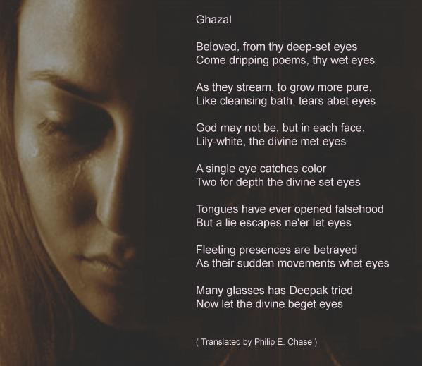 अङग्रेजीमा गजल, एउटा अनुवाद प्रयास हो है यो । यसमा बहर (meter), काफिया (rhyme), रदिफ (refrain) र गजलका अन्य सबै परम्परागत नियमहरुको पालना गर्ने प्रयास गरिएको छ । अनुवादक, फिलिप चेस, जो मेरा पारिवारिक मित्र समेत र कवि एवं अध्यापक हुन्, प्रति कृतज्ञतासहित ।