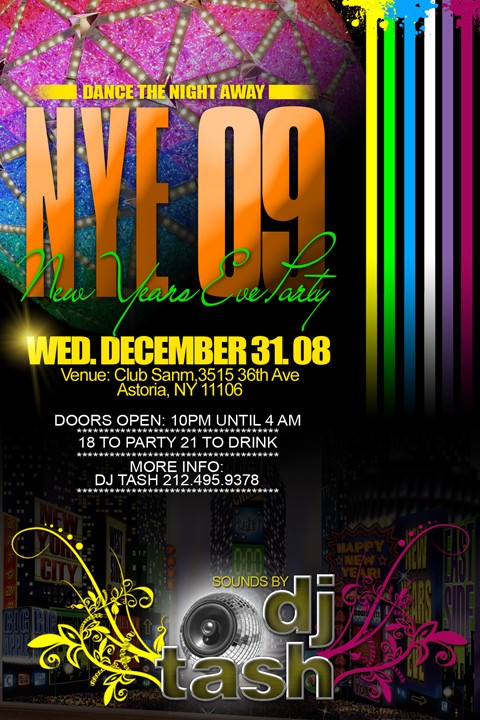 WEDNESDAY, DECEMBER 31st 2008 VENUE: CLUB SANM, 35-15 36th Ave, Astoria, NY