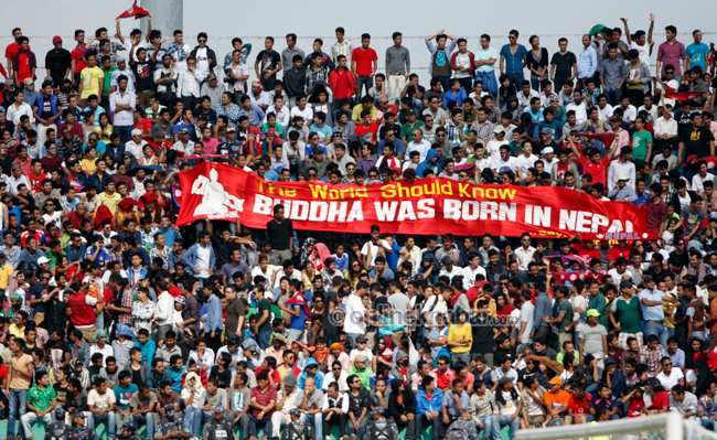 It was an international football match between two sovereign nations. People were also holding other banners which was within scope of the match, for example, "We are Red," Which means we support our team. But the Banner about Buddha seems like out of context for this match. It is a football match. One Indian even said to Kantipur TV, the spectators are hostile. If we, Nepalese, cannot provide a warm and comfortable arena to these international players then in near future they might even reject coming to Nepal for any kind of match mentioning the hostile nature of Nepalese towards Indians players which infact lowers their self-esteem and can affect their ability to perform. Once upon a time, we used to say, "Atithi Devo Bhawa, which means guests are like gods. And now we treat our guest as demons! If this is the culture we are heading, I don't see any hope for Nepal in near future. Culture plays a huge role in the development of a nation. If one cannot even control his/her sense organ and indulge in sense gratification then such behavior will ultimately lead to suffering. Similary, if Nepalese as a whole don't built a culture which is more intellectual rather than hardcore negative emotion based impulse, then there is no doubt that Nepal will vanish like darkness vanishes when sun shines in the morning!