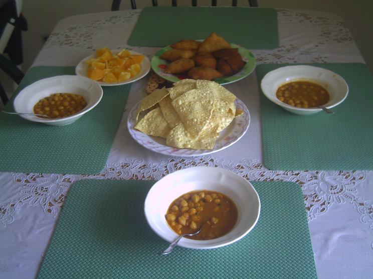 समोसा, पापड र चना नि खाम्।