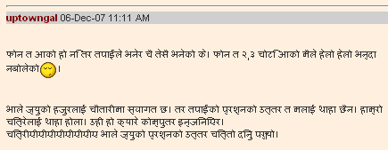 Hey guys I have a question to all you Nepali writing people. Why can't I read nepali fonts properly in Firefox? When I use Internet Explorer everything looks fine but from Firefox words are not as they are supposed to be some letters are behind another or in front of another not in order. Hyalp cos I don't like to have to open IE to read chautari.