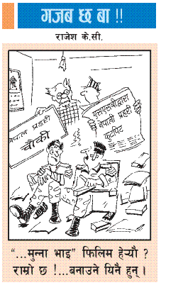 नमस्ते गाम्लेहरू!!! सबैलाइ बुधवारे दिवास्वप्न, ए सरी! दिवाकालीन वाद्यवादन, होइन! दिवाकालीन अभिवादन भन्न खोज्या त अन्यथा पर्न गएकोमा क्षमा प्रार्थी छु! :P ल चौतारीमा त भीड बढ्न थालेछ। ए ठूली, हिजोको क्यान्डल लाइट डिनरमा कति मज्जा आयो, आज चैं ईमर्जेन्सी लाईट डिनर गर्नु पर्छ है? ;)