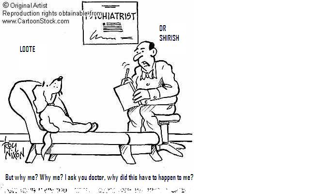 SNDY and MCS - You guys are hopeless romantics! :P But bless your hearts. The truth is, in spite of the well wishes of his women friends, Loote becomes more and more of a devdass. He wakes up in the middle of the night screaming "But why me?" He is ordered to seek professional help immediately: