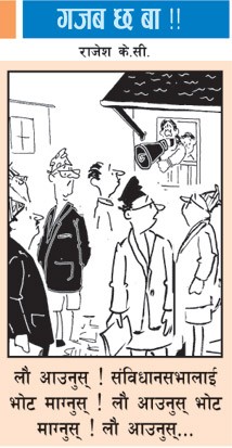 लौ, माइनस पोइन्ट पाको ले उल्टै आयोजक लाइ तमाखु दिनु पर्ने रे।  का बाट ल्याउनि होला तमाखु अब? अब अस्तिनै भन्या भए नेपाल बाटै ल्याइ दिन्थे के रे। याह त पाए पो ल्याउनु त। मुन्नी  , त्यो मैले पकाको गुन्द्रुकको झोल तिम्रो मा कसरि पुग्यो? भाउते गुरु लाइ पठाको, तेता पो पुगेछ ? ठेगाना गल्ति पो लेख्हेछु कि क्या हो?