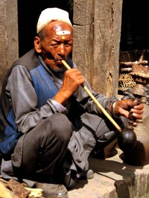 अन्तरे हजुरबा, जिम्माल हजुरबाको तमाखुको नलि खोज्नु भा हैन, लौ मागुम अँफै जिम्माल हजुरबासँअ! (फुटु: राँइलो हजुरबा aka जिम्माल हजुरबा तमाखुको मजा लिंदै)