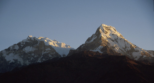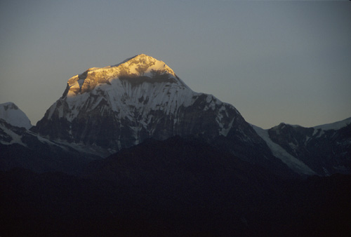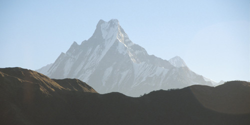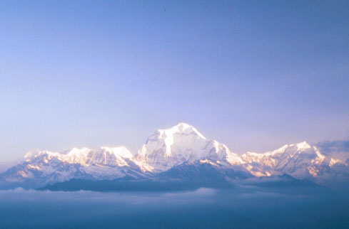 M and J had emailed me about their plan to visit Nepal way back in the summer. Luckily, I happened to be planning the same. That was when the idea of watching the new millennium’s sunrise from Poon Hill was conceived. Needless to say, that was the highlight of our trip. We woke up very early in the morning, and started our hike to Poon Hill. It was a steep uphill climb, and the trail was slippery due to the previous day’s snowfall. Hundreds of other trekkers were also climbing up in a single file. It looked like a long torch light parade. Almost an hour later, we reached the top of the hill. A lot of people were already there. Within a few minutes of our arrival, perhaps there were three or four hundred people. Soon the first rays of the sun appeared and everyone cheered again, “Happy New Year.” It was a very cold morning but no one seemed to be bothered. The majestic peaks including those of Dhaulagiri, Annapurna South, and Hiuchuli were in full view, turning from dark pink to golden to white as the sun rose. Seeing different kind of people speaking different languages, it appeared that the whole world was represented there. Everyone was busy taking pictures. Collectively, several thousand shots must have been taken within the next hour or so.
