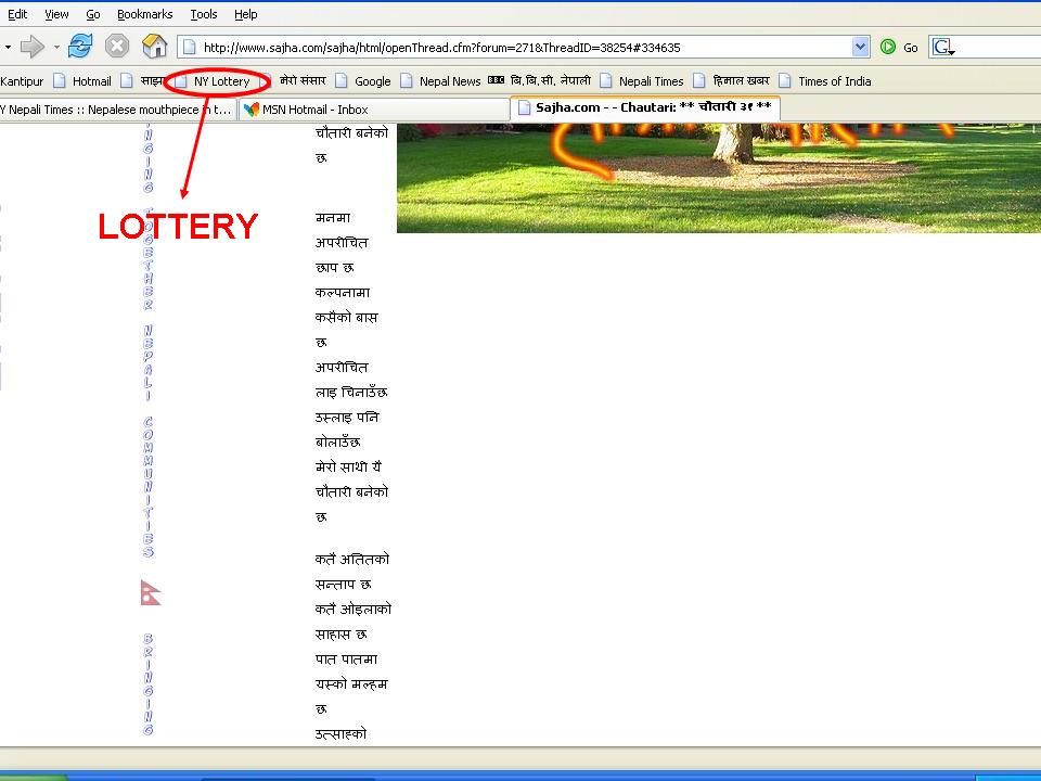यत्ति जना को आखा त्यो लटरि मा लागेसि कसरि पर्थ्यो अब लागि हाल्यो नि अबासि पुन्टेदा लुकाइहाल्नुस् है नम्बर् चाहि गर्दैछन् है जासुसि आइडिया दिने बुइनिलाइ आधा रकम् लटरि परेछि :p