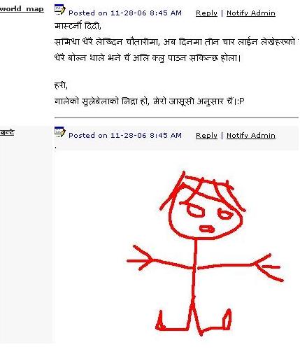 ल, चित्रेले पनि मुकुन्डो खोलेछ, ल निशब्रो को पनि मुकुन्डो खोल्दिम् के रे!!! निशब्रो = गालब :)