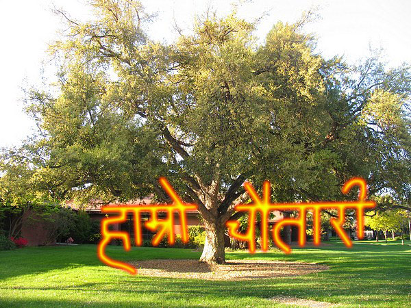आँsssssच! भाषा तालीम पनि लिइहालौं आँsssssच! ओहो! दरो गफ गैराको छन्त नि हौ! कस्तो मजाको कुराहरु गरिरहेका रेछन सबले ठुल्सलाई नेपालि सिकाइराको के फिरि। फेरि सबैले ठुल्बुईनिलाई नेपाली सिकाइराको रहेछन् आम्बोsssss गुन्ट्स फुच्चे नि आइदिएको?? आम्मै गुन्टे बाबु नि आएको? अचेलको केटाहरु लास्ट फर्वार्ड के फिरि। आजभोलिका केटाहरु धेरै नै बाठा। यो गुन्ट्सलाई ट्रेनिङ बबाल दिएर अन्त हाम्रो ग्याङमा तान्नु पर्छ नि हौ। गुन्टेलाई कुराहरु सिकाएर हामि जस्तै बनाउनु पर्छ (सौजन्य: निसब्रो) चारदिशालाई के भन्छ, त्यो पनि था' पाइराखौं पूर्व = East पश्चिम = West उत्तर = North दक्षिण = South (सौजन्य: चित्रे) अन्त्यमा, थ्याँउस्गिभिङ् भन्ने अउसरमा एकआर्कालाई धन्यवाद पनि दिम् केरे! अस्तु :॥