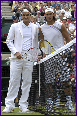 oys bro! "poetry in motion" - well put! btw, just to let you know if you have missed, several exhibitional matches are going to be held later this year between Roger and the former king of grass court - Pete Sampras. while pete is quite a fan of federer's poetries, he claims that the game has slowed down considerably over the last few years and players are no more risk takers enough to come to the net and "play serve and volley". perhaps he is trying to point out the rationale behind federer's domination in the court. :P here's an excerpt from the article: In summary, Sampras doesn't think much of the grasscourt tennis currently being played. He doesn't sound terribly convinced that he - soon to turn 36, five years after he walked away from tennis after winning his 14th grand slam title at the US Open - couldn't still get to the net against these guys and put away vintage Pistol Pete volleys. These guys would include the four-time defending champion, Roger Federer, whom Sampras recalled sparring with in Los Angeles this year and, as he said on Tuesday during a conference call to promote World Team Tennis, "holding serve pretty handily". The "sad" problem, as Sampras sees it, is that players have surrendered to the slower conditions, the stronger racquets, the fear of risk. He has been watching Federer hang on the baseline, toy with lesser players who won't dare push him the way Boris Becker and Stefan Edberg and Goran Ivanisevic and Patrick Rafter used to chip, charge and challenge Sampras across the 1990s. "If there is anything Roger doesn't like to see, it is someone coming in and serving and volleying, someone putting pressure on him," Sampras said. "I think my game matched up reasonably well against his." click hereto read the full article.