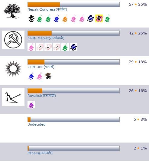 Hi Guys, I have created a Poll on Who Might win the CA Election in Nepal or party of your preference. This is also my course requirement. Please,Cast your VOTE here..and Help me prepare a good article. http://www.uploadtherevolution.blogspot.comThanking you in Advance.