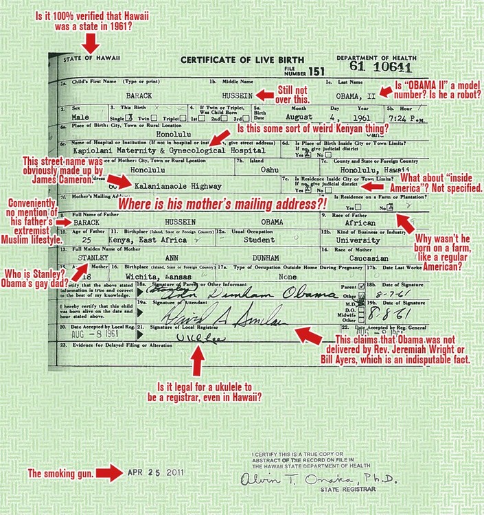What’s plausible is that somewhere along the way — from the scanning device to the PDF-creationsoftware, both of which can perform OCR (optical character recognition) — these partial/pseudo-text images were created and saved. What’s not plausible is that the government spent all this time manufacturing Obama’s birth certificate only to commit the laughably rookie mistake of exporting the layers from Photoshop, or whatever photo editing software they are meant to have used. It’s likely that whoever scanned the birth certificate in Hawaii forgot to turn off the OCR setting on the scanner. Let’s leave it at that.