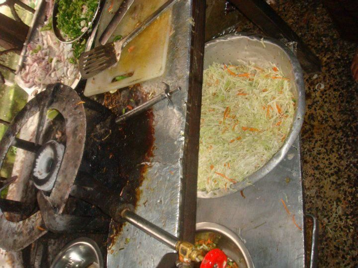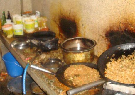 खाने ठाउँ सफै छ। टेबुल पुछिएकै छन्। भान्साको ढोका खुल्नेबित्तिकै ह्वास्स गनाउँछ। उफ्! शौचालयसँगै रहेको भान्सामा खानेकुरा भुइँभरि छरिएको छ। पकाउन ठिक पारिएको ममः, चाउमिन, तरकारी राखेको भाँडा गाईवस्तुको कुँडो पकाउन प्रयोग हुनेजस्तै छ। चिया पकाउने भाँडा कटकटिएको। चिया उम्लिएर बिरामीले खाने जाउलोमा पोखिएको छ। भान्सापछाडि ढलजस्तै फोहोर। लामो समयदेखि थुप्रिएको फोहोर व्यवस्थापन नगर्दा झिँगा भन्किँदै। भाँडा माझ्ने ठाउँमै खानेकुरा। सड्दै गरेका।