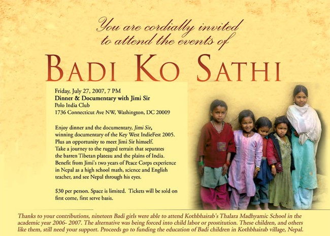 Please RSVP by Wednesday July 18 by emailing badikosathi@yahoo.com at www.badikosathi.org/events/ If you cannot attend, please consider donationg online at www.badikosathi.org/donate.html