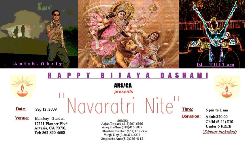Date: Sep 12, 2009 Venue: Bombay -Garden 17221 Pioneer Blvd Artesia, CA 90701 Tel: 562-860-4608 Time: 6:00 PM to 1:00 AM