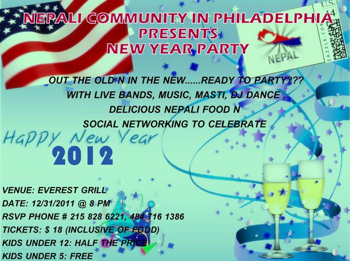 Come Celebrate with us the NEW YEAR'S Event with Tons of Entertainment including but not limited to Social networking....Of course the Best Nepali Cuisine,Live Performances and DJ dances under the DUST OF LIGHTS...........