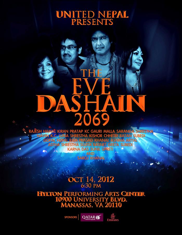 UNITED NEPAL Presents "The Grand Cultural Show The Eve 2069" October 14th, 2012 at Hylton Performing Arts Center, Manassas,VA on the auspicious occassion of Bada Dasha