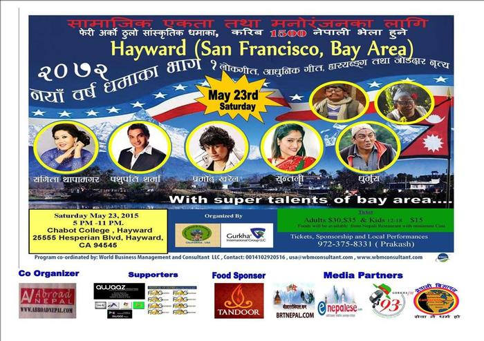 Comedy and Musical Nite in Bay Area Organized by Gurkha International LLC and Everest Cultural Activities Group in Hayward CA on 23rd May 2015 Saturday.