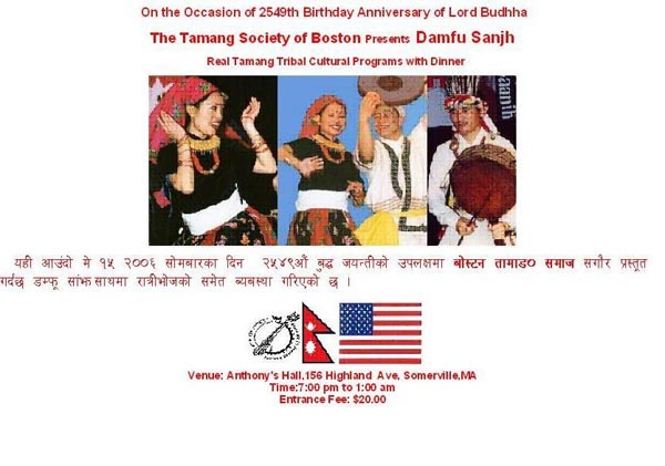 बà¥à¤¦à¥à¤§ जयनà¥à¤¤à¥€ को उपलकà¥à¤·à¥à¤¯à¤®à¤¾ बोसà¥à¤¤à¥‹à¤¨à¥ को तामाङॠसमà¥à¤¦à¤¾à¤¯ पà¥à¤°à¤¸à¥à¤¤à¥‚तॠगरà¥à¤¦à¤› डमà¥à¤«à¥ साà¤à¤ More details coming soon Cultural Programs and Dinner Venue: Anthony Hall, Highland Ave, Somerville